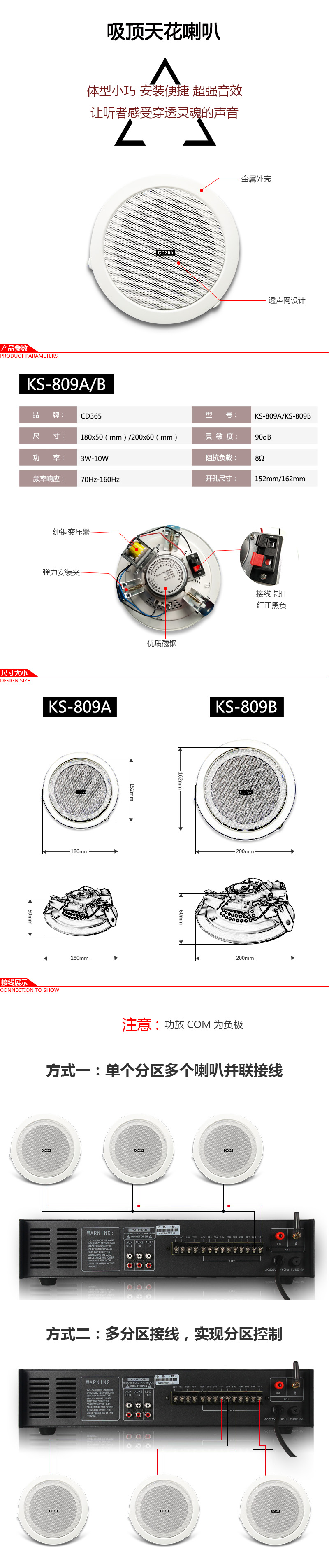 額定功率3-10W定壓輸出70V-100V靈敏度90dB頻率響應(yīng)90-16000Hz