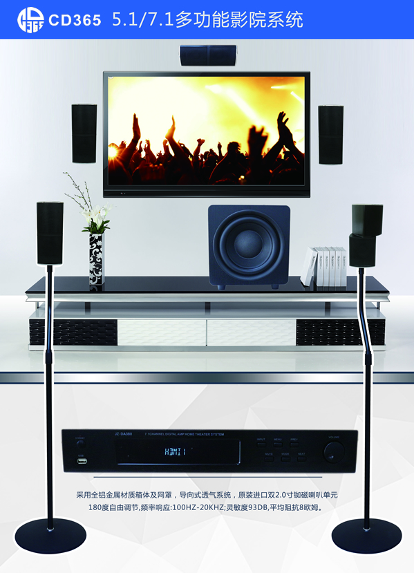 | 3 | 7.1數(shù)字合并影院功放機(jī) | CD365希帝可 | DA380 | 1 | 臺 | *50W*7通道 *無源低音炮功率130W *信噪比(直通模式.A計權(quán))-86DB總諧波失真(4Ω/1kHz)≤0.2%*頻率響應(yīng)20Hz-20kHz,±2db *輸入靈敏度200mv *更大輸入電平2.2V電源電壓180-240V/50Hz *電源功率600W *HDMI高清:支持HDMI1.4版本接收與發(fā)送.支持3D.支持ARC電視信號回傳. 支持HDMI深色與xvYCC.視頻格式支持1920X1080P向下兼容.USB播放:支持無損音樂格式播放,支持MP3/WMA播放.更大支持32G U盤.藍(lán)牙播放:內(nèi)置經(jīng)過BOB認(rèn)證的3.0藍(lán)牙.接收蘋果和安卓系統(tǒng)的手機(jī)或其它帶藍(lán)牙的設(shè)備發(fā)送的音頻內(nèi)容.藍(lán)牙掃描配對 Higuest 即可DTS解碼: DTS/DTS-HD MAXter Audio/DTS-HD High Resolution/DTS-Express/DTS-HD-Es/DTS 96/24/DTS Neo:X 2 Dolby Digtal/Dolby True HD/DoiIby Digta plus/Dolby Digital EX/Dolby Pro Logic Ⅱ/DoIby ProLogic Iix/DoIby Pro LogicⅡz |